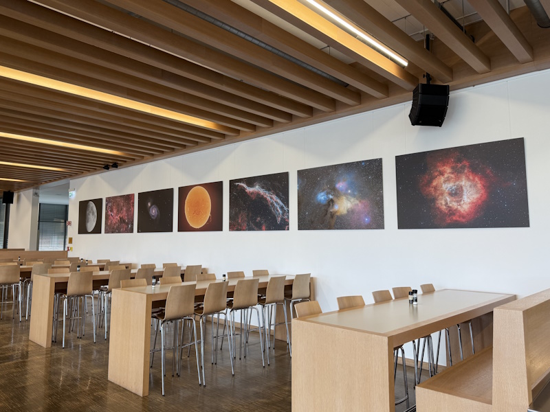 Seit Kurzem bereichern beeindruckende Astrofotografien die Kantine des Siemens-Standorts in Amberg. Die Bilder, aufgenommen von Mitgliedern des Vereins Sternfreunde Amberg-Ursensollen e.V., zeigen faszinierende Himmelsobjekte wie Nebel, Galaxien und die Sonne in eindrucksvoller Detailtiefe. Die Ausstellung lädt die Mitarbeitenden oder Besucher dazu ein, in ihren Pausen einen Moment in die Weiten des Universums einzutauchen.
