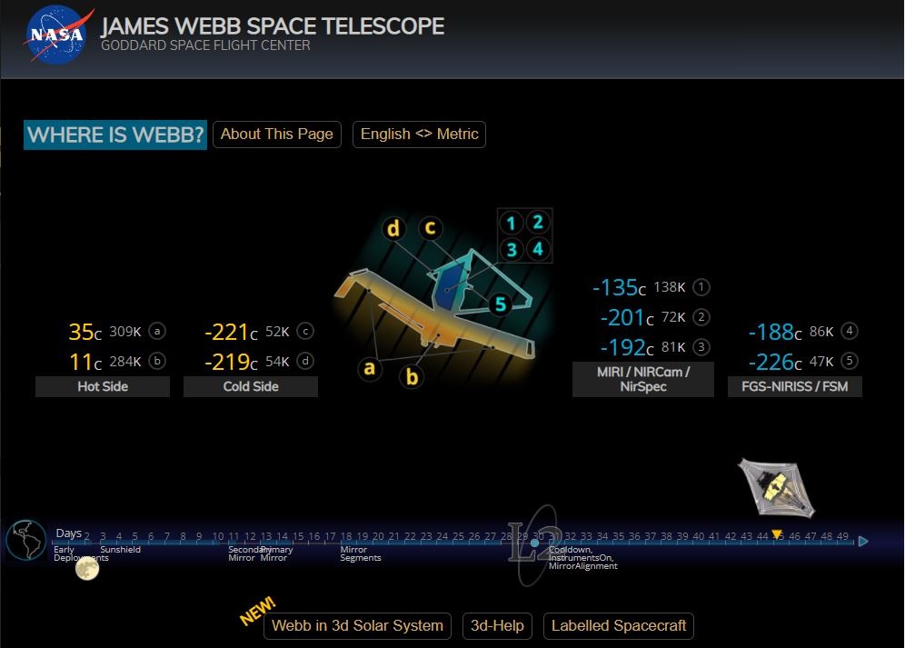 Anbei der Link zur "Live"-Nachvervollgung: https://jwst.nasa.gov/content/ webbLaunch/ whereIsWebb.html
