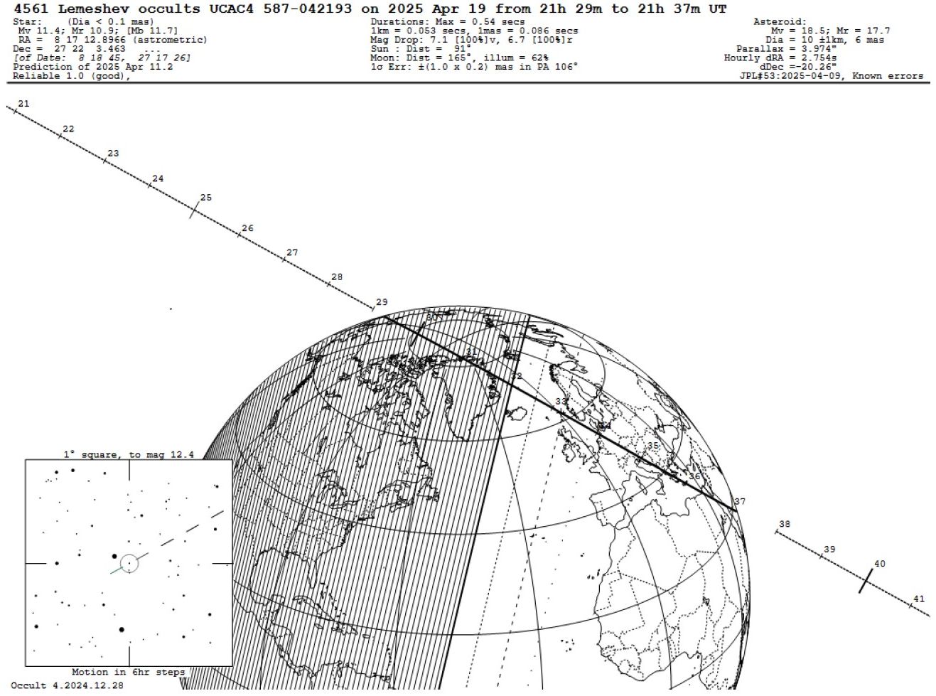 Eine mögliche Erklärung für die Neutraublinger Bedeckungsdauer könnte eine nicht runde bzw. kugelförmige Form des Asteroiden sein. Hier laufen die Auswertungen noch. An dieser Stelle sei schon Gregor Krannich, SODIS Reviewer Team, für die noch nicht abgeschlossene Auswertung, sowie seine Zusagen dass die Daten veröffentlicht werden dürfen, gedankt. Sobald diese vorliegen, reiche ich sie über obigen Verteiler nach.
