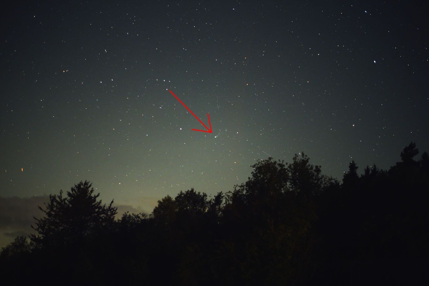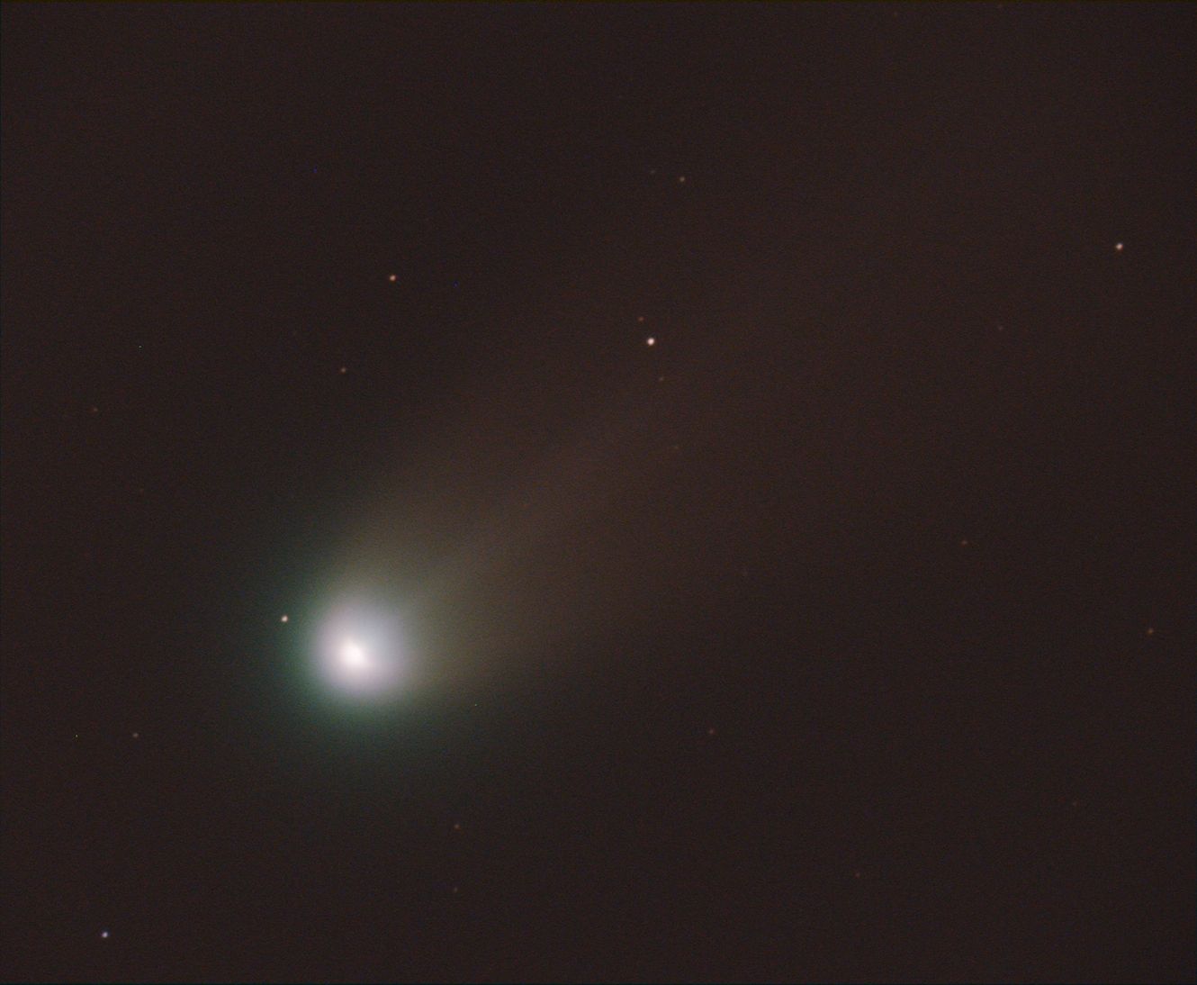 Folgende Aufnahmen vom 15. Oktober unseres Mitglieds Norbert Reuschl zeigen den Kometen, einmal mit 50mm Brennweite und einmal mit unserem Vereinsteleskop mit 4m Brennweite:
