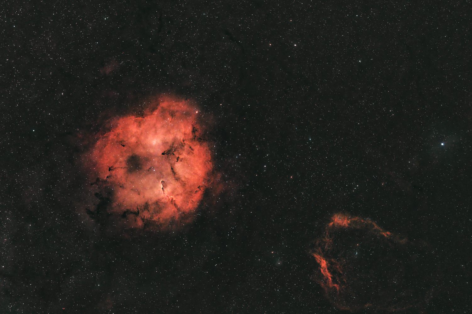 Der Rosettennebel (NGC 2237, 2238, 2239, 2244, 2246) ist eine riesige, fast kreisförmige Wasserstoffregion im Sternbild Einhorn. Die jungen hellen Sterne im offenen Sternhaufen NGC 2244 im Zentrum des Nebels regen die Wasserstoffatome zum Leuchten an. Der ganze Komplex liegt in einer Entfernung von 5200 Lichtjahren und hat einen Durchmesser von etwa 130 Lichtjahren.