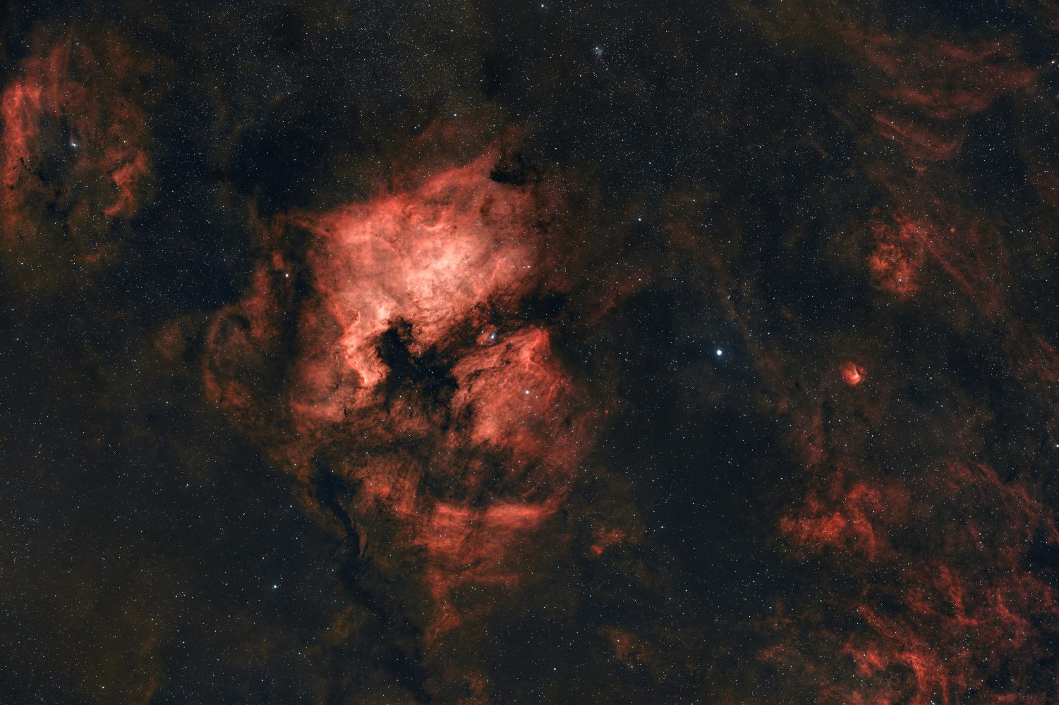 Der Nordamerika Nebel gehört zu den größten Emissionsnebeln (H-II-Gebiete) am nördlichen Sternhimmel und befindet sich im Sternbild Schwan.